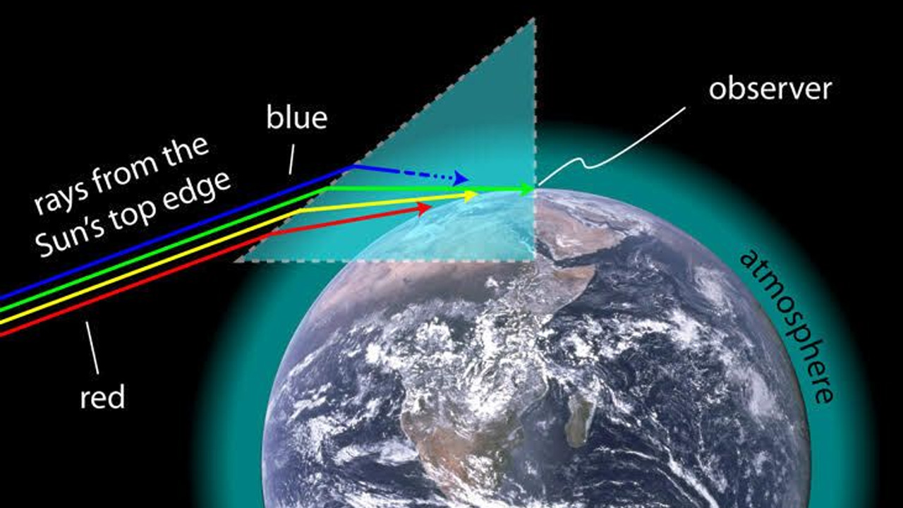 Yeşil ışık fenomeni, atmosferin üst katmanlarındaki ışığın kırılması sonucu meydana gelir. Güneşin ışığı, atmosferin farklı katmanlarından geçerken çeşitli dalga boylarına ayrılır. Bu kırılma ve dağılma sürecinde, mavi ve yeşil dalga boyları daha fazla bükülür ve diğer renklerden önce gözlemlenir. Güneş ufka yaklaştığında, bu ışık dalga boyları kırılarak yeşil bir parıltı oluşturur. Mavi ışık ise atmosfer tarafından daha fazla dağıtıldığı için genellikle görünmez.