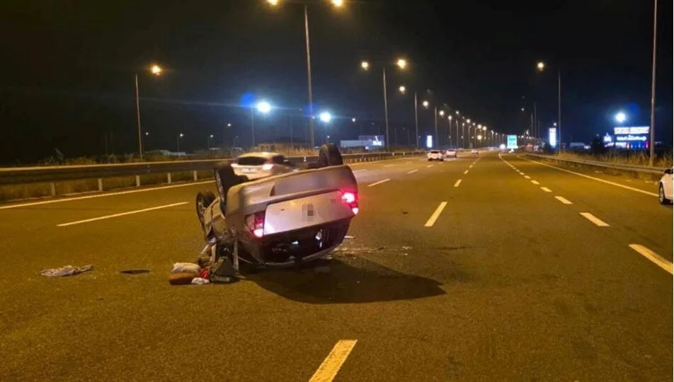 Sakarya Kuzey Marmara Otoyolu’nda gece saatlerinde meydana gelen trafik kazasında faciaya ramak kala büyük panik yaşandı. Takla atan araçtan emniyet kemeri takmayan 9 yaşındaki bir çocuk dışarı fırlarken yaşananlar çevredeki güvenlik kameralarına saniye saniye yansıdı. Kazada toplam 5 kişi yaralandı olay anı ve sonrası ise adeta nefesleri kesti.
